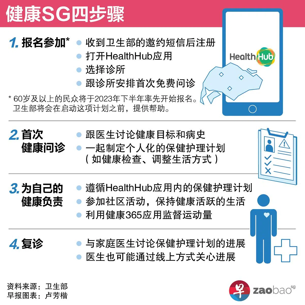 收到邀约短信后,公众可打开HealthHub应用选择一家全科诊所或综合诊疗所,并与诊所安排首次免费问诊。当局也会安排社区伙伴协助居民报名参与。