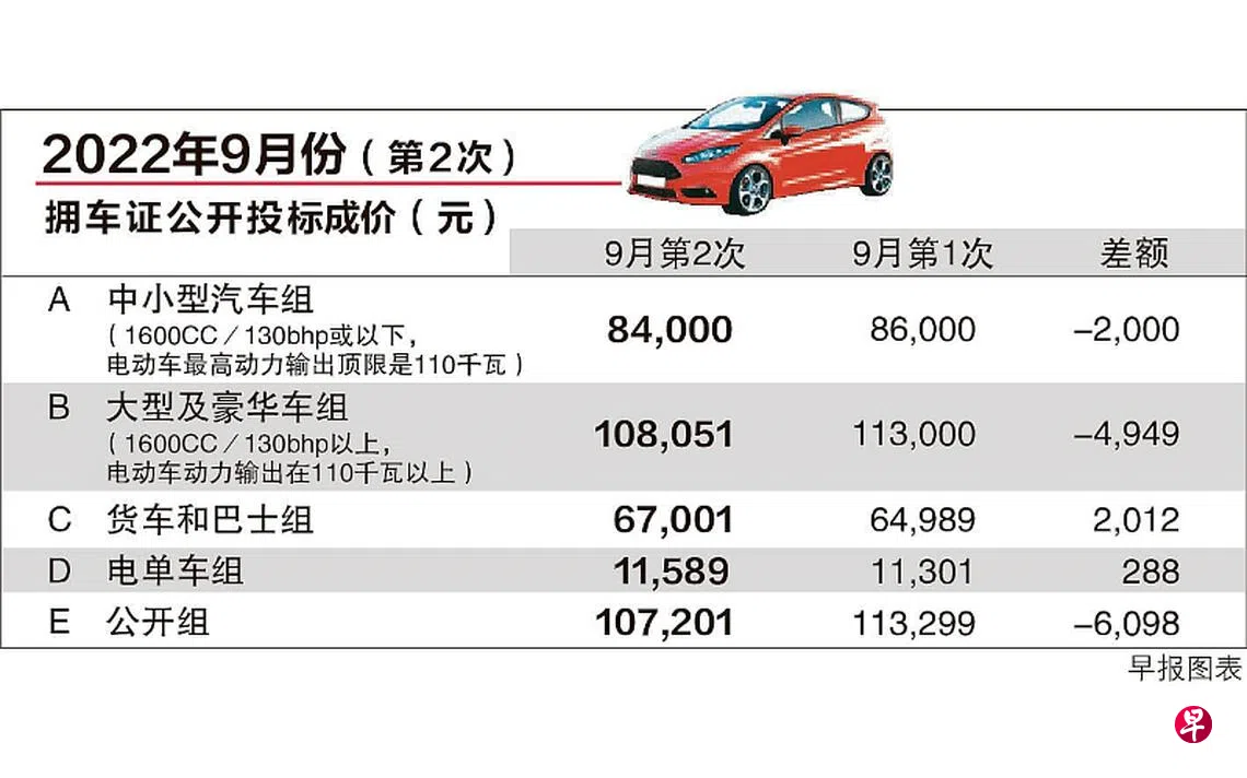 9月第二轮拥车证公开投标活动星期三(9月21日)下午结束,应付大众市场的中小型汽车(A组)成价再度削减2000元(2.3%),报8万4000元。