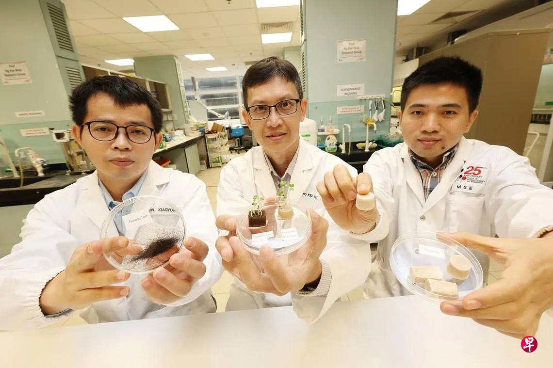 南洋理工大学科研人员成功从人类头发提炼出角蛋白(keratin)作为水耕法基材(substrates),并利用它试种微型蔬菜、包菜、小白菜和芝麻菜等本地常见蔬菜,取得良好效果。