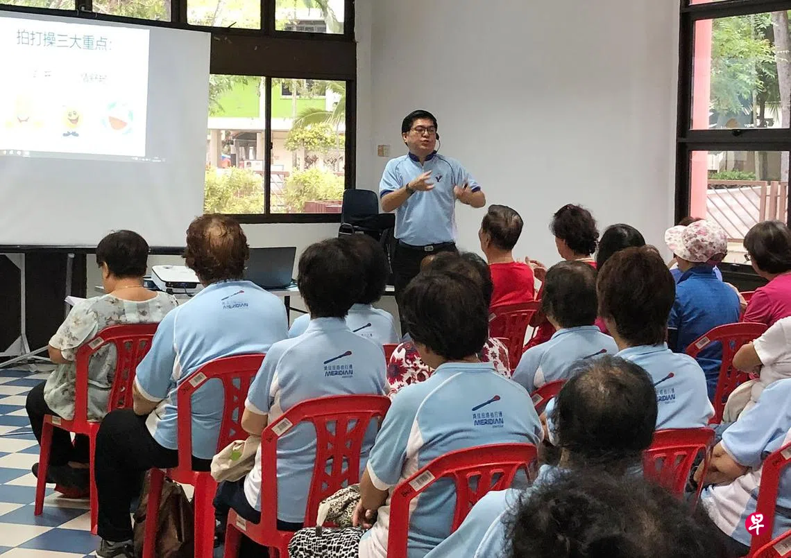 刘晓仪说,弟弟是中医诊所的总务,年轻时跟一位来自广州的师傅学习拍打操后,就在本地免费教学至今。“拍打操是通过拍打人体穴位进行保健,弟弟几乎每天都在教,也到过40家民众俱乐部授课,学生遍布全国”。