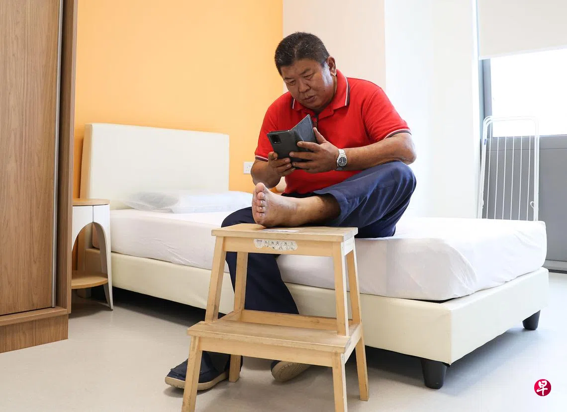 因小腿遭细菌感染,黄康祥到新加坡中央医院求医,但只住了三天就出院;他接下来在家里养病两周,全程有专人跟进检验和监督;新安排的费用比全程住院便宜,扣了保健储蓄后不必掏出现金。
