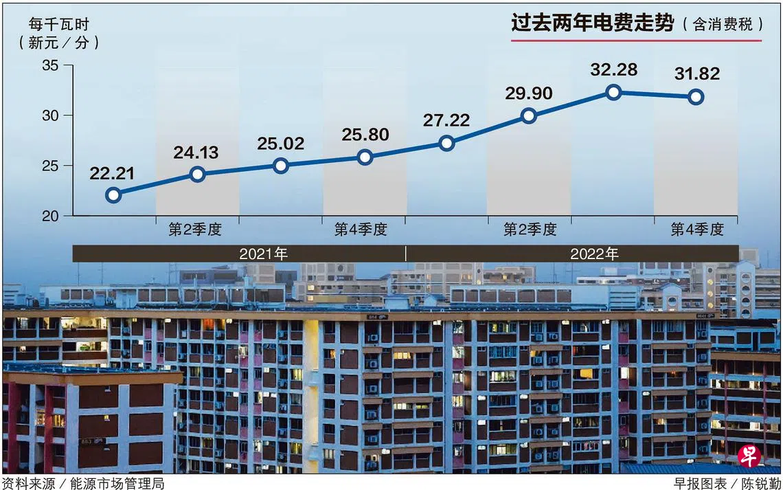 新加坡能源集团星期五(9月30日)发文告说,10月1日至12月31日的住家电费从每千瓦时30.17分减至29.74分,加上消费税后是31.82分。这意味着,四房式组屋家庭每月电费不含消费税平均减1.55元。