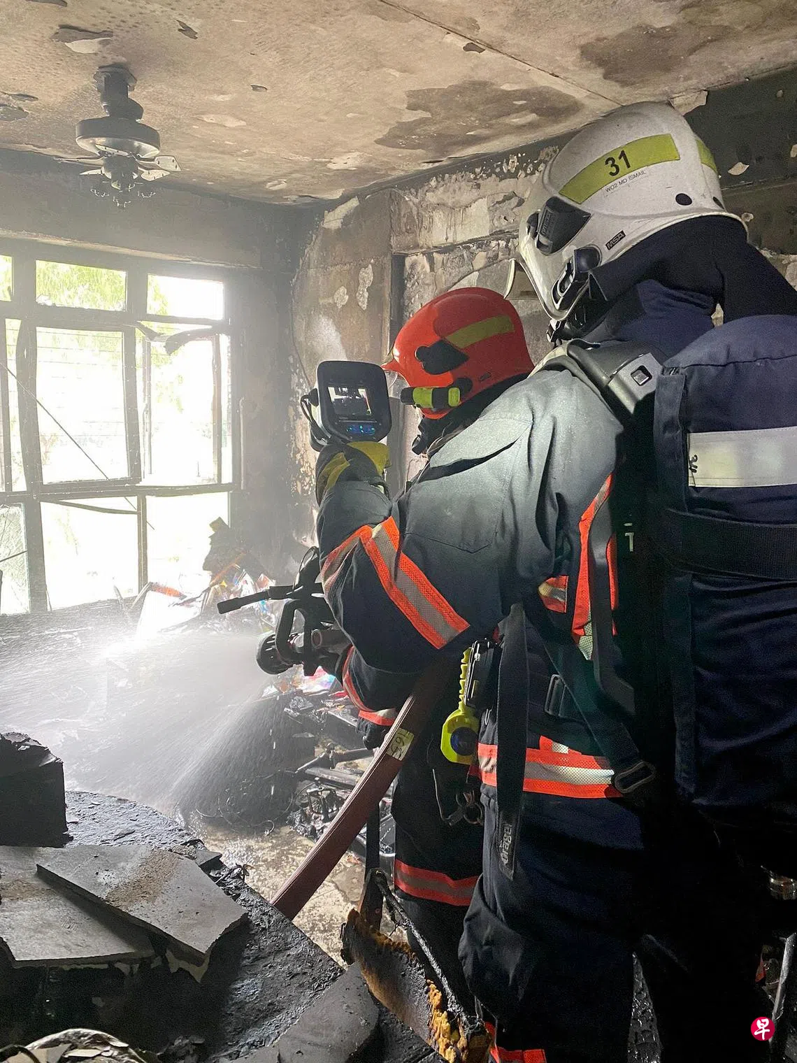 民防人员抵达现场时,该组屋单位火势猛烈,民防人员戴上呼吸设备后进入屋内,及时救出受困睡房的五人,他们都因吸入过量浓烟感到不适,其中两人轻微烧伤,他们过后都被送往中央医院接受治疗。