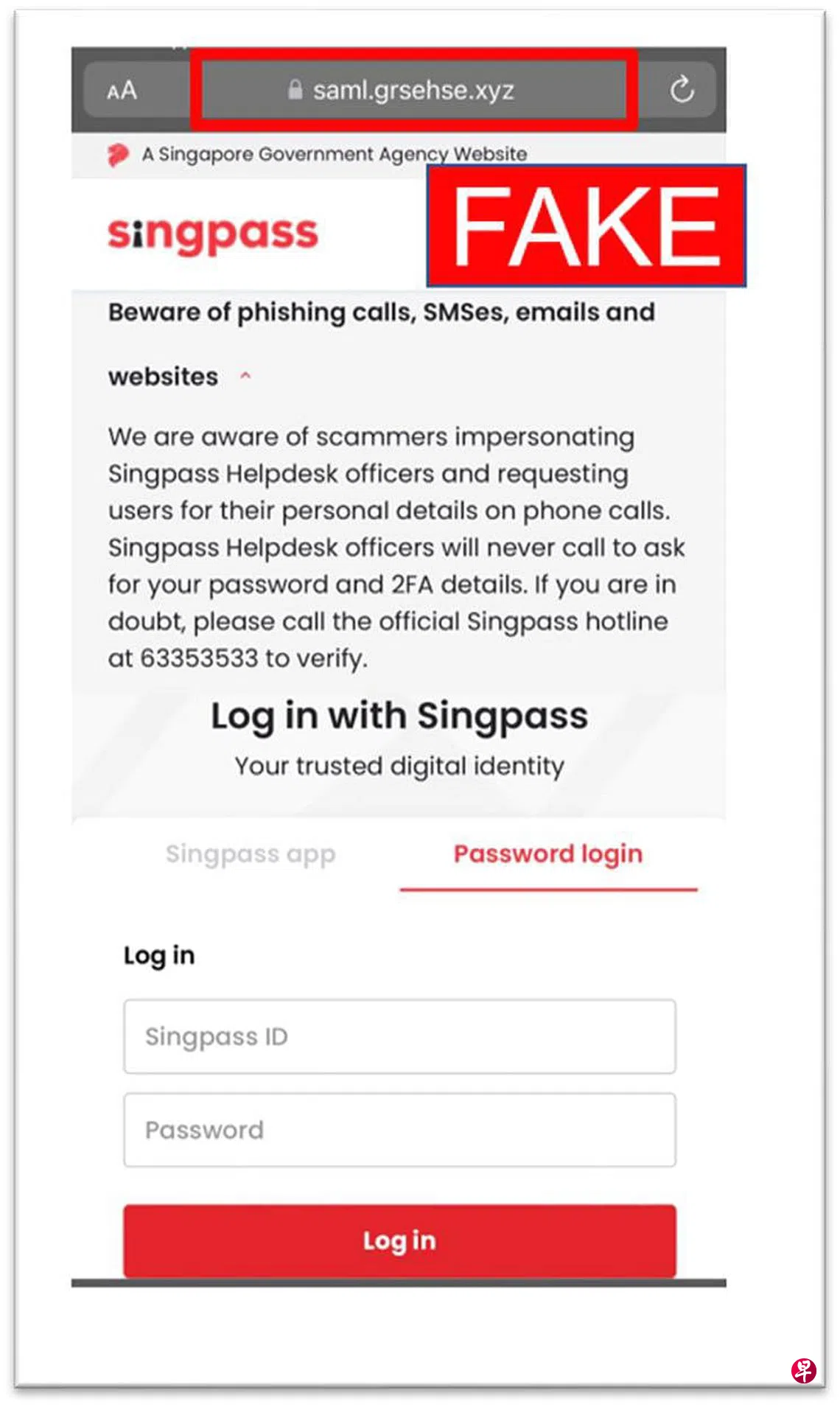 本地出现新的网络钓鱼诈骗手法,骗子利用钓鱼短信骗取Singpass登入资料。