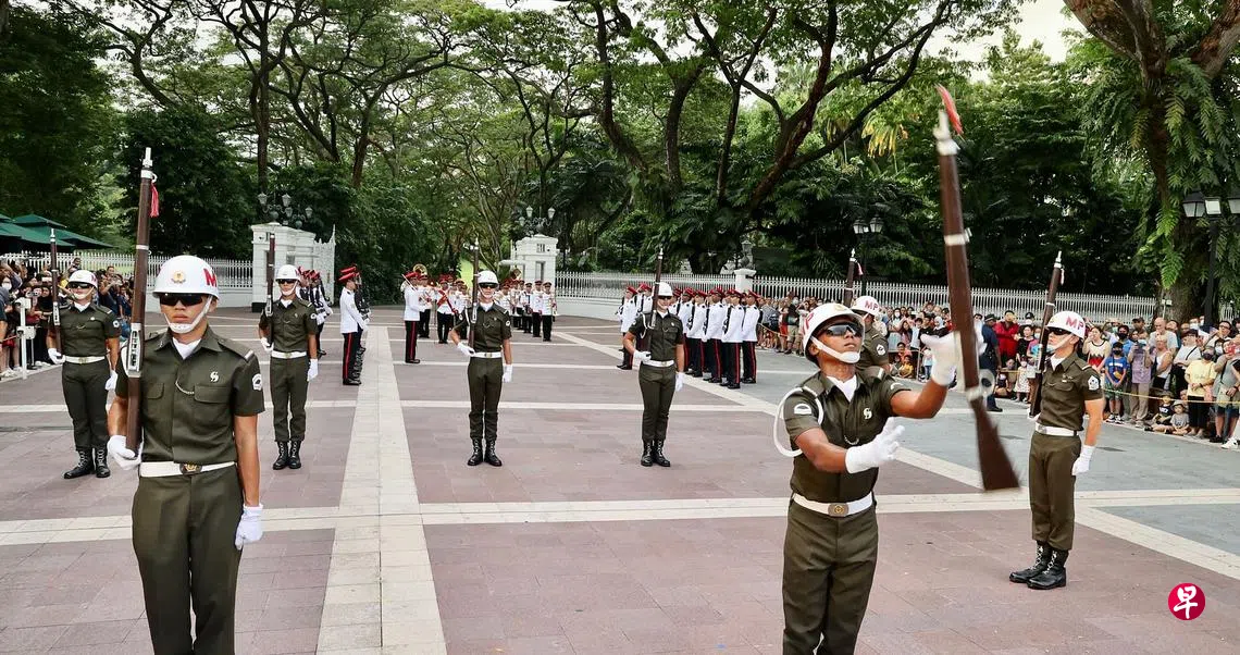 总统府星期天恢复因冠病疫情暂停了两年多的卫兵换岗仪式,吸引了100多名公众驻足观看。