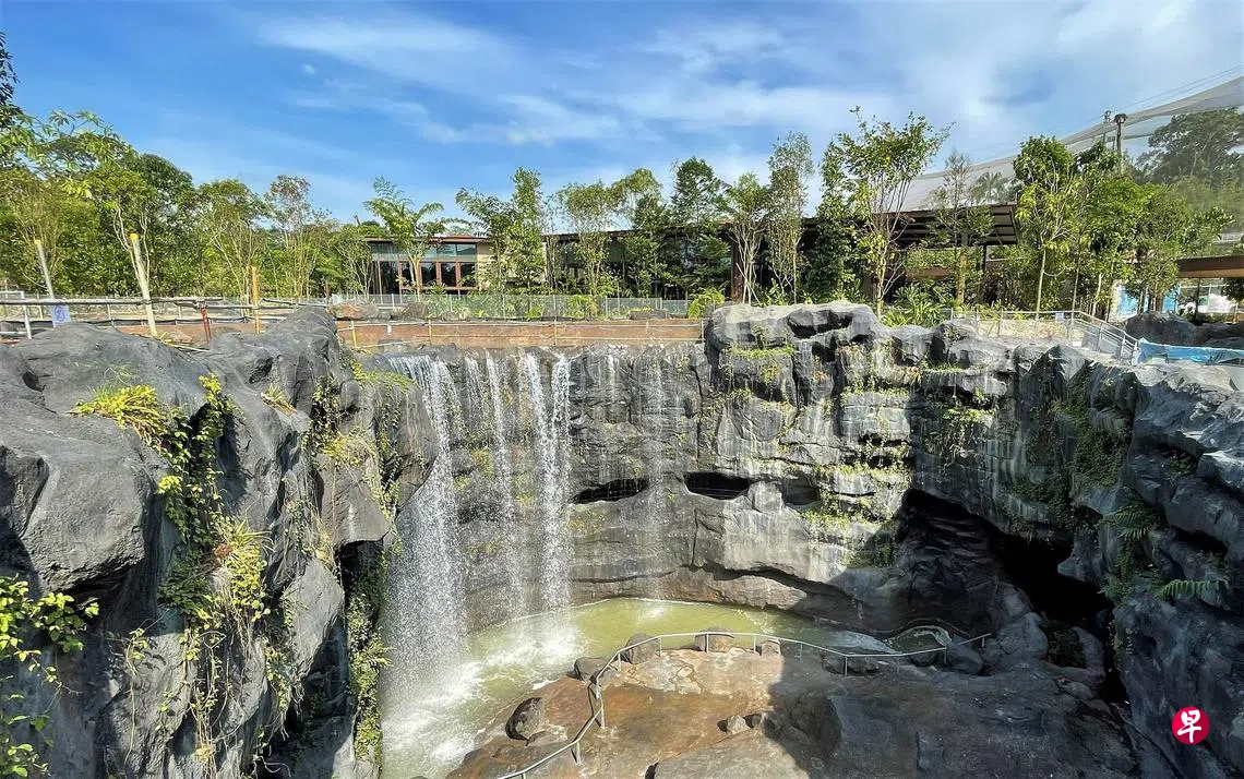 一步入万态野生动物世界西侧,崭新新加坡飞禽公园Bird Paradise入口广场外,会有一座10米高瀑布迎客,让游客在舒缓人心的流水声中用餐和消遣。