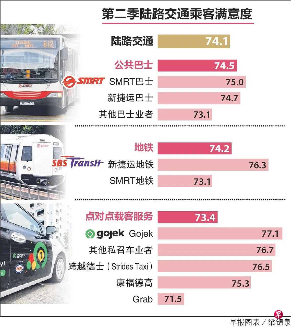 新加坡管理大学卓越服务研究院日前公布今年第二季陆路交通乘客满意度调查,共有2350名新加坡公民和永久居民在4月至7月参与这项网络调查。