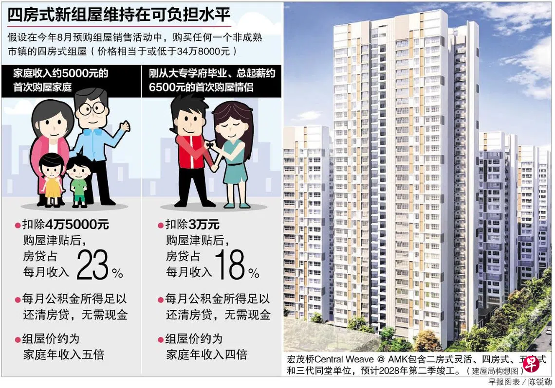他以家庭收入约5000元的首次购屋家庭为例,他们在今年8月的预购组屋销售活动中,可负担得起三个非成熟市镇项目——兀兰、裕廊东和蔡厝港的四房式单位。这些项目的四房式组屋价,相当于或低于非成熟市镇四房式预购组屋的平均价,即34万8000元。
