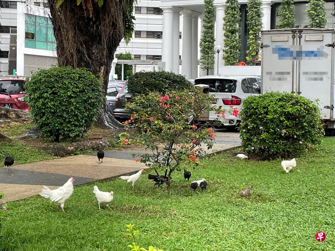 《新明日报》记者今早走访时,有10多只野鸡在花园的走道和树下觅食,记者走过“鸡群”时,它们也不怕人,不会马上闪躲。