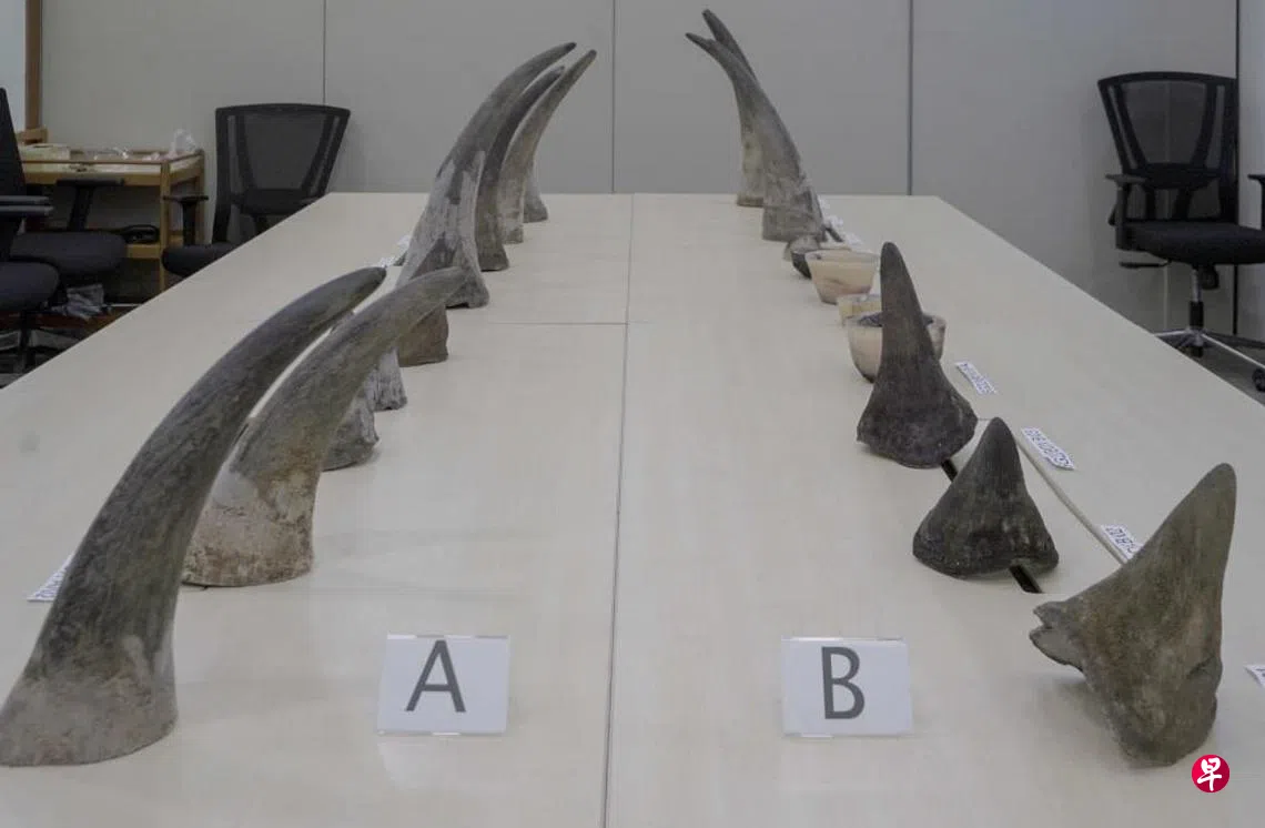 根据文告,被捕的嫌犯原本打算从南非走私这些犀牛角到老挝,没想到中途在新加坡转机时落网,藏在行李箱里的犀牛角也被当局起获。