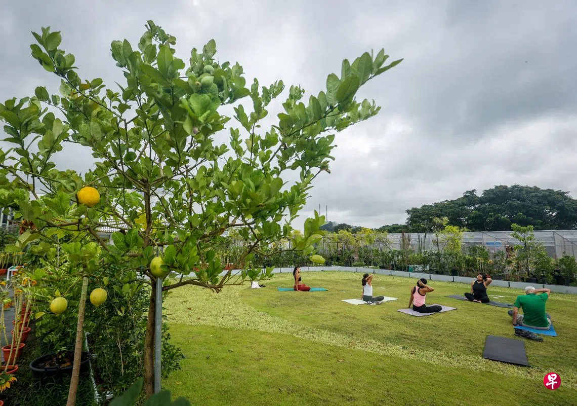 在草坪上做瑜伽、骑脚踏车榨果汁……配合世界心理健康日,本地首个为促进心理健康而设的天台农场正式向公众开放。