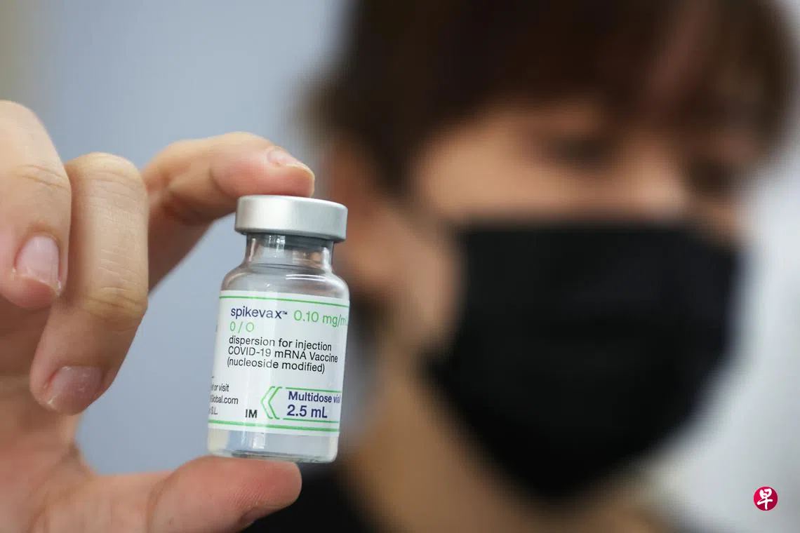 莫德纳/Spikevax二价疫苗是本地首款获卫生科学局临时授权的二价疫苗,单剂含25微克对抗原始毒株的疫苗,以及25微克对抗奥密克戎BA.1变种毒株的疫苗。