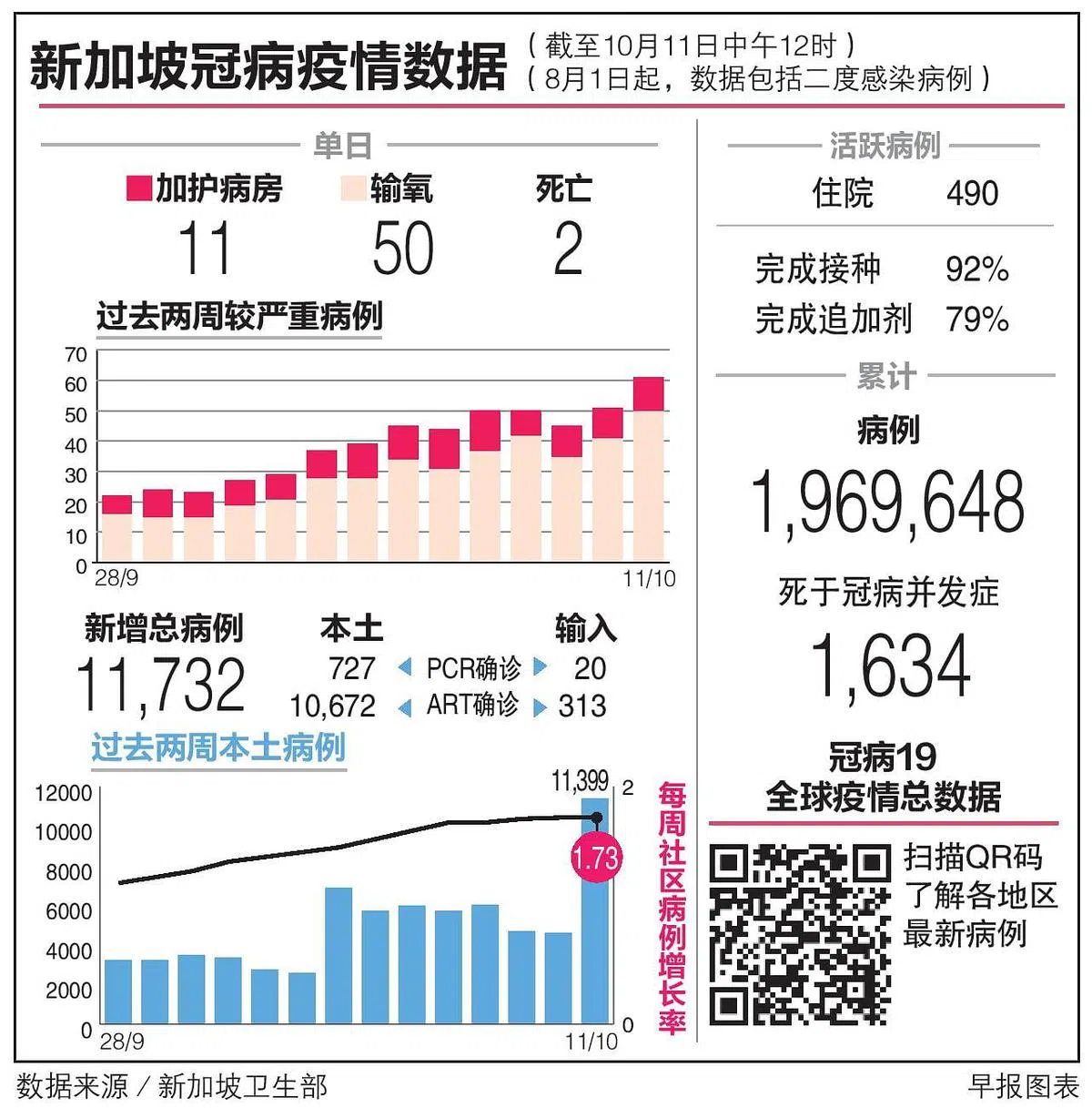 根据卫生部网站的数据,我国星期二新增1万1732起冠病病例,是过去两个半月来的单日最高,每周社区病例增长率为1.73。7月26日通报新增病例为1万2419起。