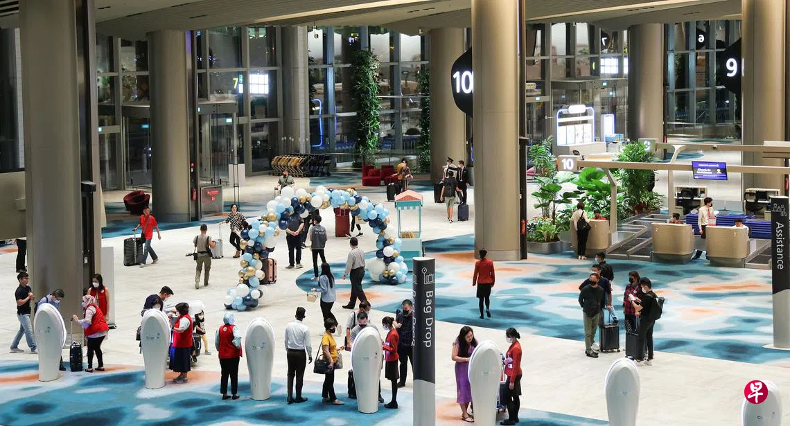 星期二(10月11日)早上7时10分,新航飞往吉隆坡的SQ104航班和飞往曼谷的SQ706航班从T2起飞。《联合早报》记者凌晨4时许来到离境厅时,已有不少乘客陆续抵达。翻新后的T2设有更多自助机器,乘客只需约10分钟便可完成登机与托运行李的手续。