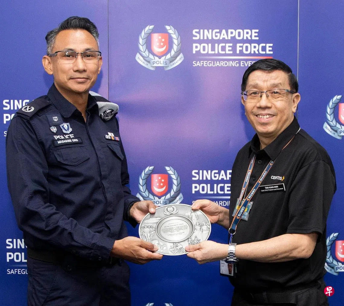 警方星期二(10月11日)在公共交通保安指挥处颁发公共精神奖(Public Spiritedness Award)和社区合作奖(Community Partnership Award)给10名公众和地铁站职员及保安人员,予以表扬。