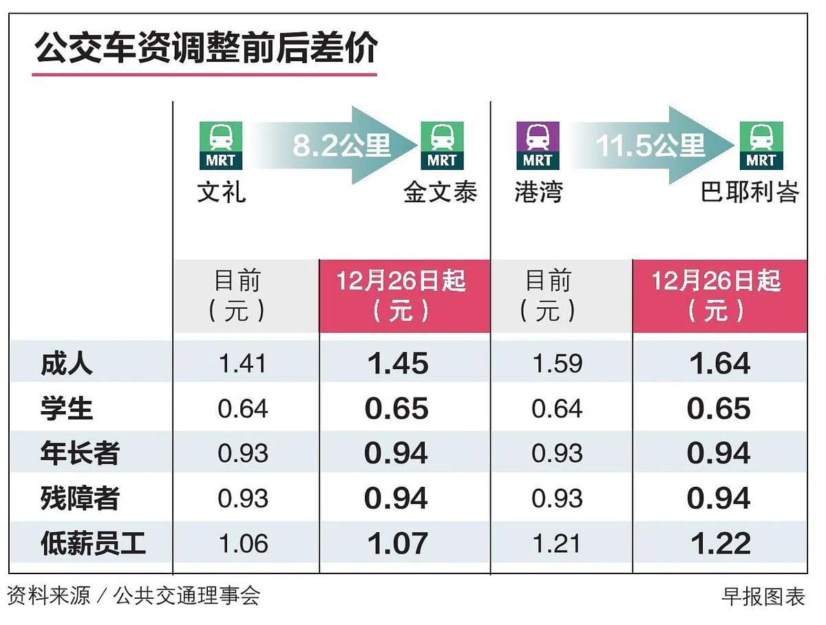 从12月26日起,以车资卡或银行卡付费的成人车资,每趟车程上调4分至5分。