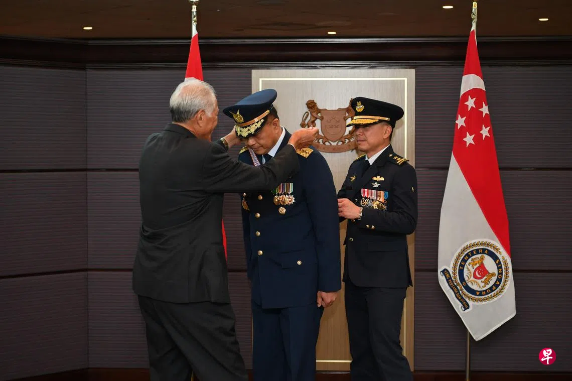 我国国防部发文告说,普拉塞特约(Fadjar Prasetyo,中)在加强印尼空军与新加坡空军的防务关系方面做出了重大的贡献,因此被授予奖章。