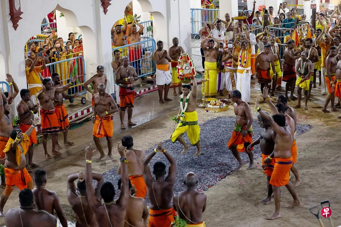 超过3000名印度教男信徒赤脚踩过火炭堆,参与人数恢复至冠病疫情前近四分之三的规模。