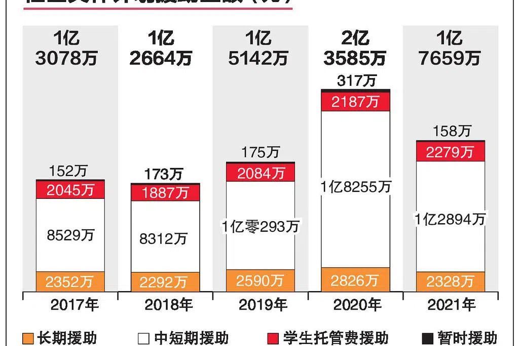 上个财年发放的援助金比2020财年少约5900万元,年比相当于少了25%,但仍比疫情前三年每年平均的1亿3600万元多。上个财年指的是去年4月至今年3月。