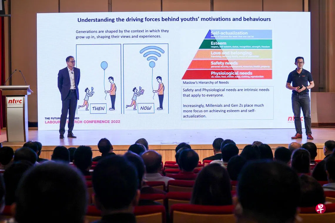 职总星期五(10月21日)举行劳资政协作伙伴和学者等云集的第四届劳动研究大会。新加坡科技设计大学李光耀创新城市中心总监潘竞宏在有关了解年轻员工未来需求的环节上,阐述调查结果。