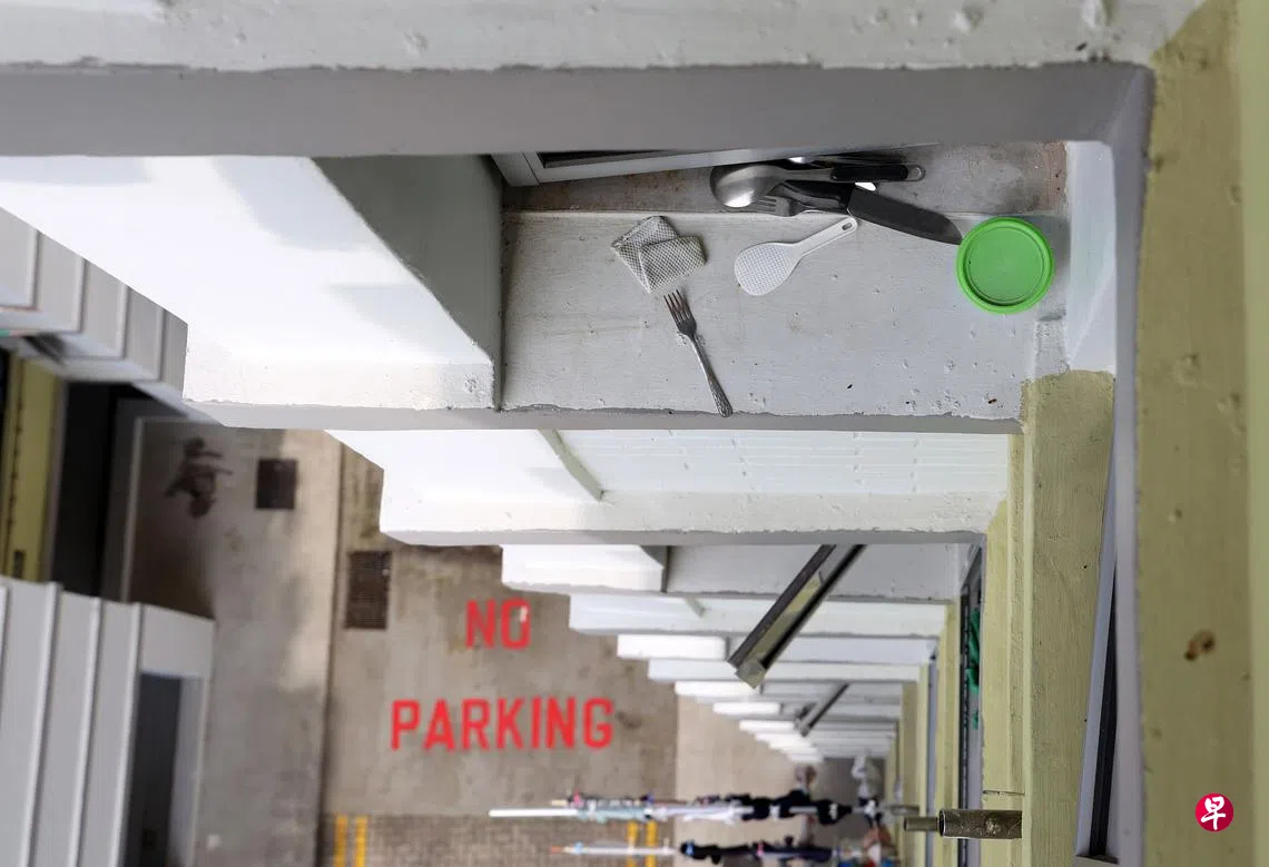 住在蔡厝港62街第602座组屋的曾姓女学生(24岁)告诉《联合早报》,过去两年,同座组屋10楼一个单位的住户,经常把汤匙和叉子等厨具放在厨房的窗台上,最近连刀子都放。她担心住户开窗时,可能会把窗台上的厨具推下楼,砸到楼下的公众。