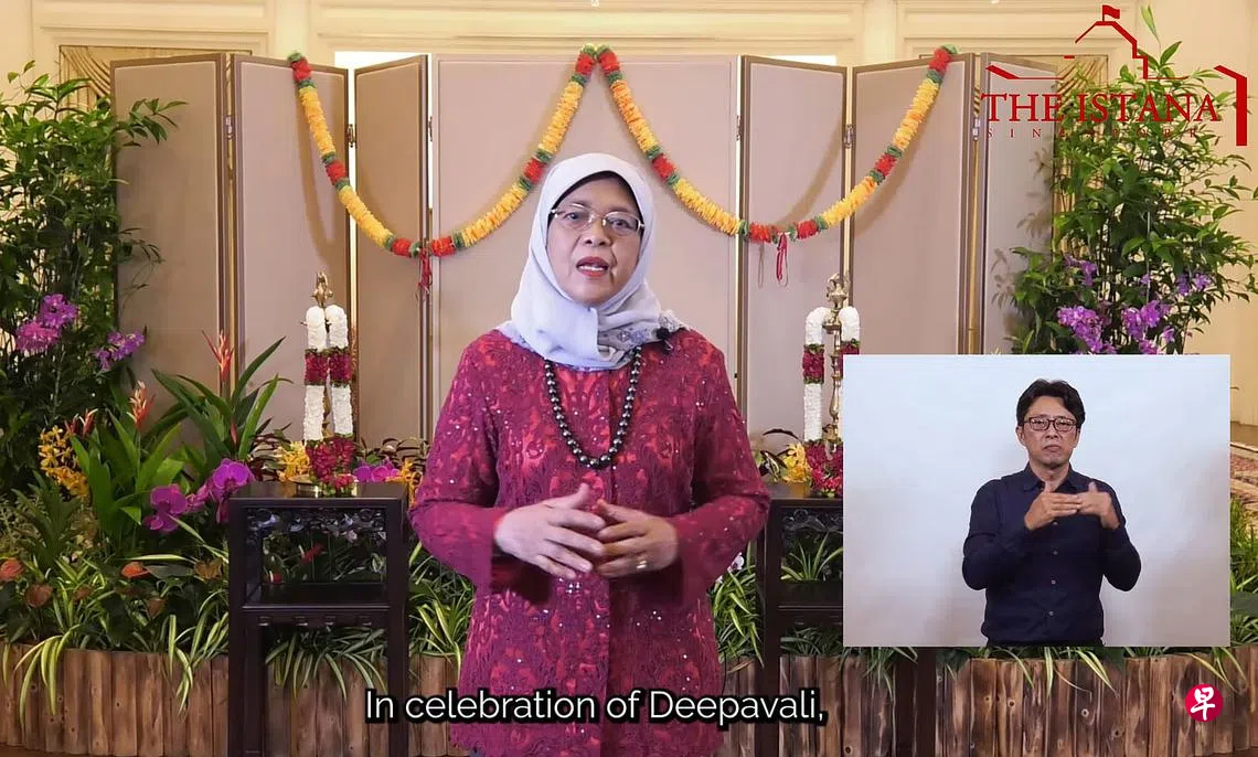 哈莉玛总统星期五(10月21日)在脸书上载的视频中说,屠妖节是印度教徒与亲人欢聚的重要节日,尤其在今年防疫限制放宽后。与其他佳节一样,屠妖节是信徒与家人肯定彼此的时刻,承诺继续在顺境与逆境中相互扶持。
