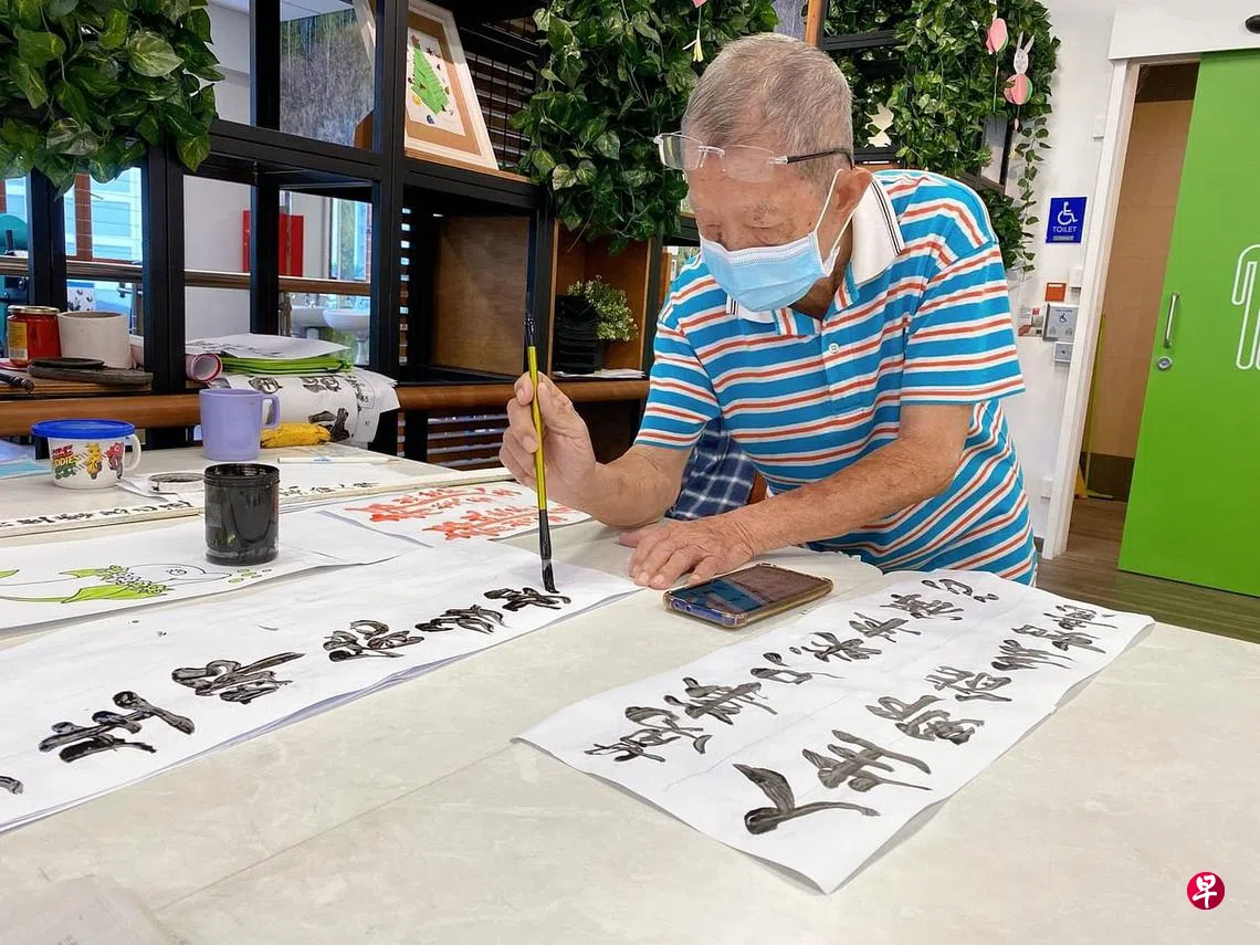 他笑说,小时候看到父亲写得一手好字,一直记在心里,于是通过上网看资料自学书法,如今康乐轩逢年过节张贴的对联,许多都是出自他的手笔。