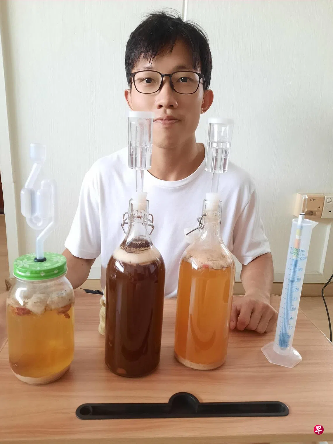 再次酿制康普茶,重新燃起了陈健忠对各种发酵食品的兴趣。他最近在家酿制火龙果酒、咖啡酒和菊花蜂蜜酒等。