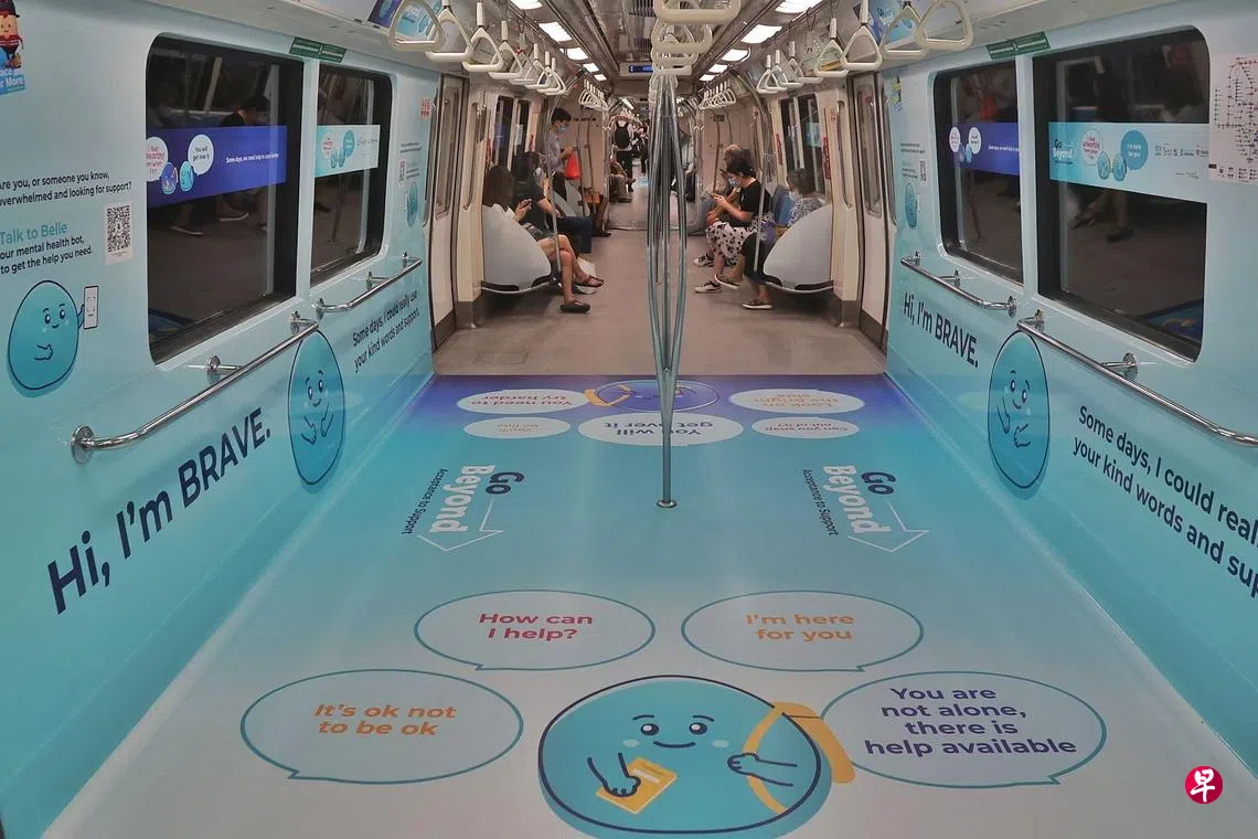 由国家福利理事会和触爱社会服务共同领导的“跨越成见,退去标签”(Beyond The Label)运动,推出促进心理健康的地铁列车。列车下来四周会在南北线裕廊东站和滨海南码头站之间穿行,向约50万名乘客宣导心理健康的重要性,以及如何在学校、工作场所和社区等场所,更好地支持心理疾病患者。