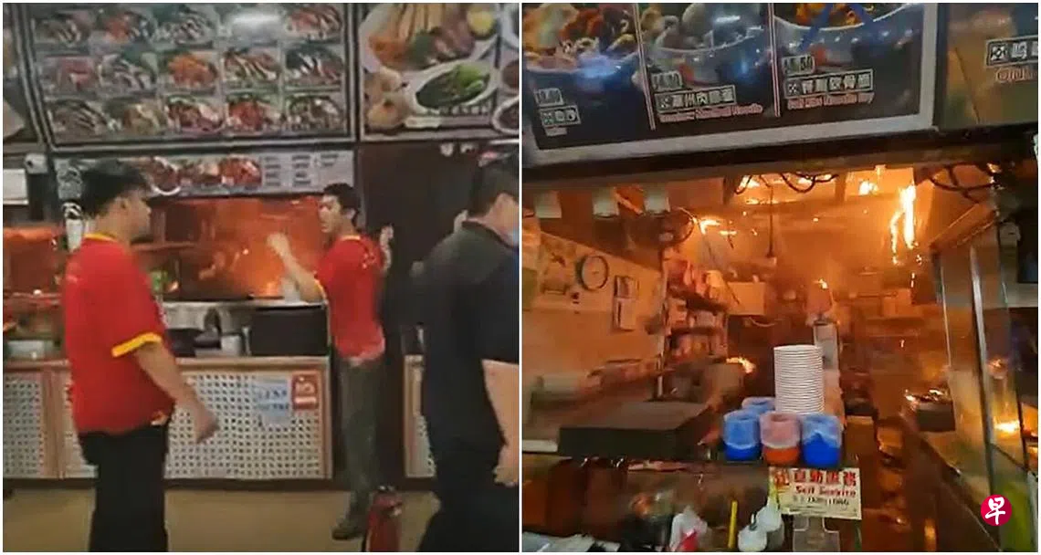 由于左右两侧的摊位共用一个吸油烟机,火势不久后蔓延开来,黄先生也通知隔壁摊位疏散。