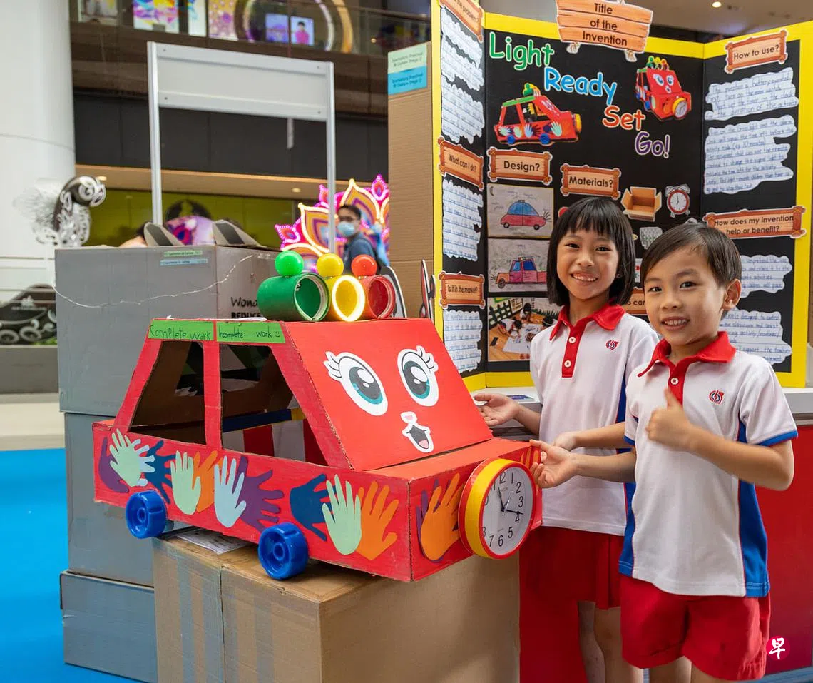 人民行动党社区基金会(PCF)Sparkletots幼儿园的学生黄乐峰和陈诗恩在介绍自己的发明时说,他们的灵感源于马路上的交通灯。绿灯代表同学们可以继续活动、黄灯提醒大家活动时间还剩下10分钟,红灯则是必须停止活动。