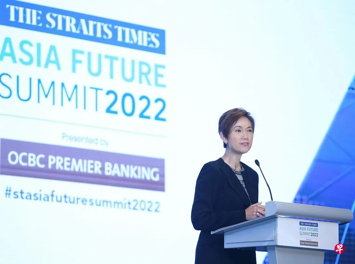通讯及新闻部长兼内政部第二部长杨莉明星期二(11月1日)在《海峡时报》举办的首届亚洲未来峰会上,针对如何在通讯发达的网络时代增强信任发表演讲。