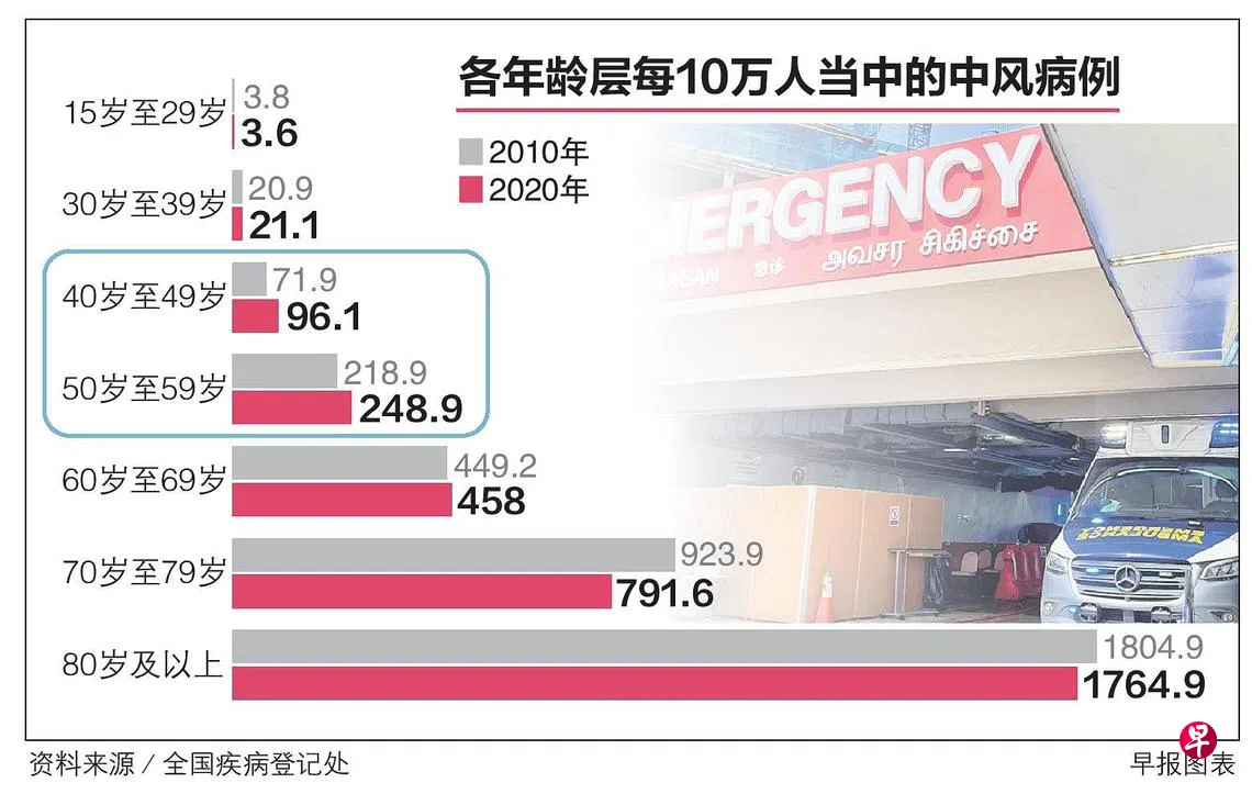 过去10年,本地中风病患逐年增加,四五十岁中年人中风比率显著上升。