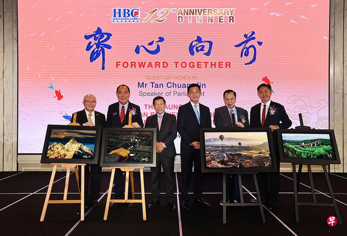 海南商会星期六(11月5日)在乌节大酒店举办12周年庆典晚宴,超过400名本地和海外商会代表、企业家及会员出席,主宾是国会议长陈川仁。