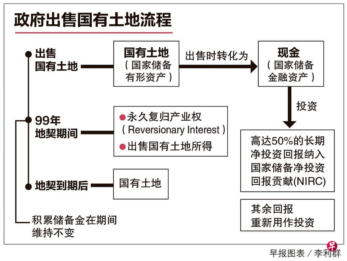 新加坡国有土地属于国家储备金的一部分,当政府出售土地时,储备金的有形资产转化为金融资产,储备金本身并未增加。