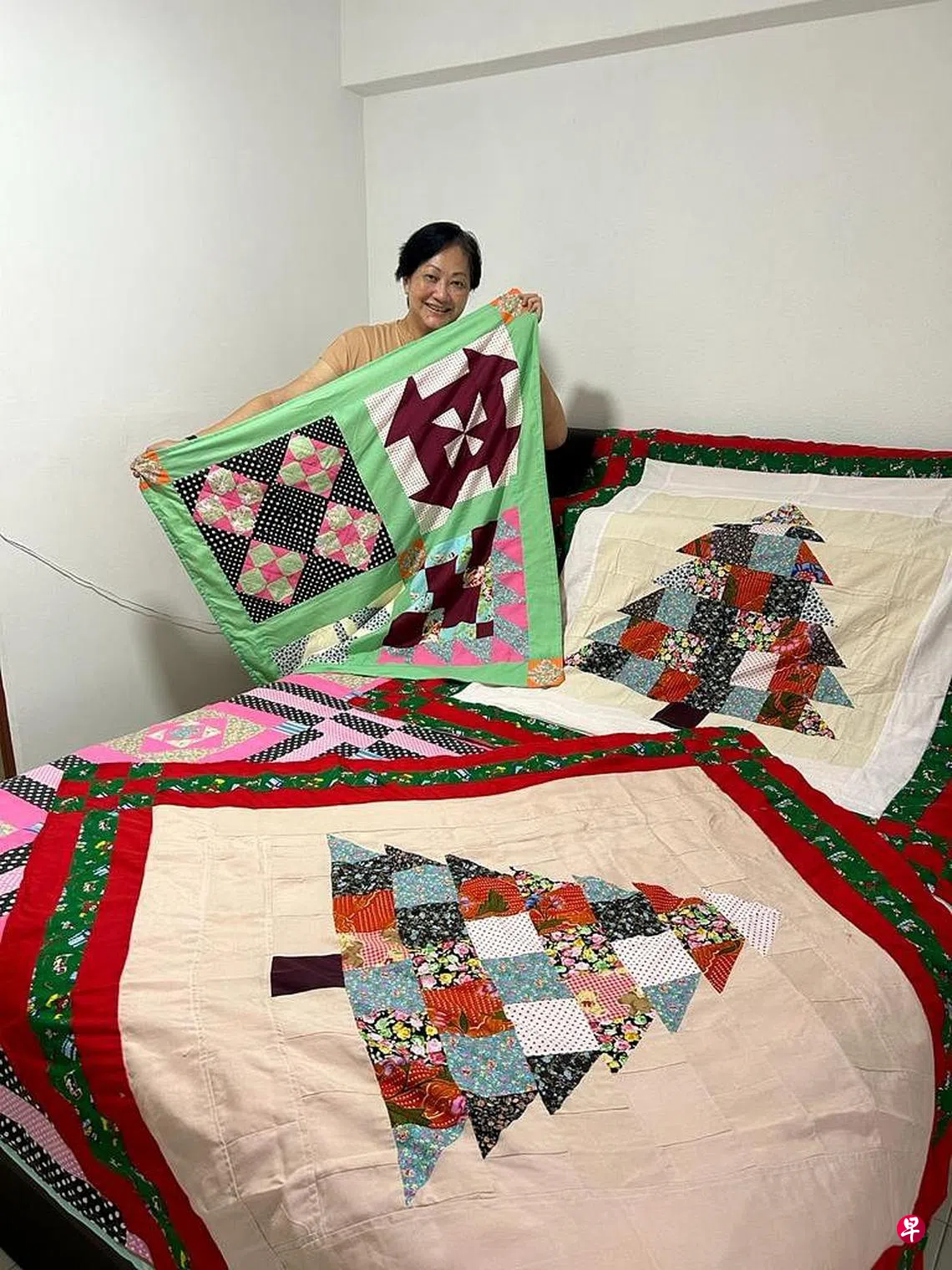 黄秀珍现在缝被的手法已更加熟练,常制作百衲被给亲朋戚友。她今年还根据孙儿喜欢的颜色,用碎布拼成圣诞树的图案作为圣诞礼物,设计颇有巧思。