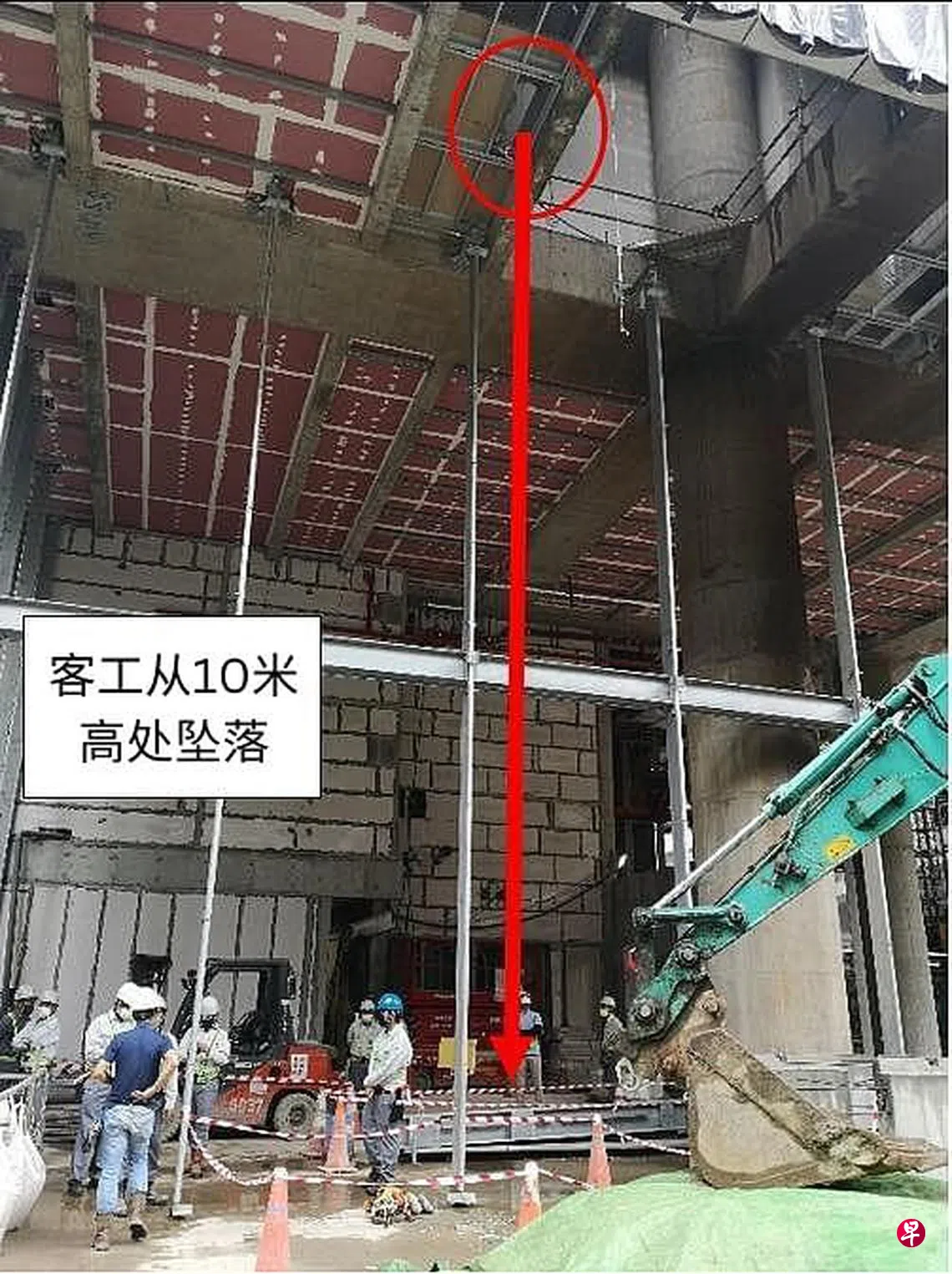人力部星期二(11月15日)在脸书贴文说,这起事故发生在10月3日,受伤的客工被送入陈笃生医院救治。当局说,涉事工地的发展商和客工的雇主是中野新加坡(Nakano Singapore)。