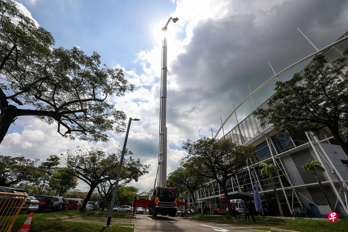 由我国研发,可伸展到比樟宜机场控制塔还高的新型90米消防云梯,首次在亚洲防火安全大会上亮相。