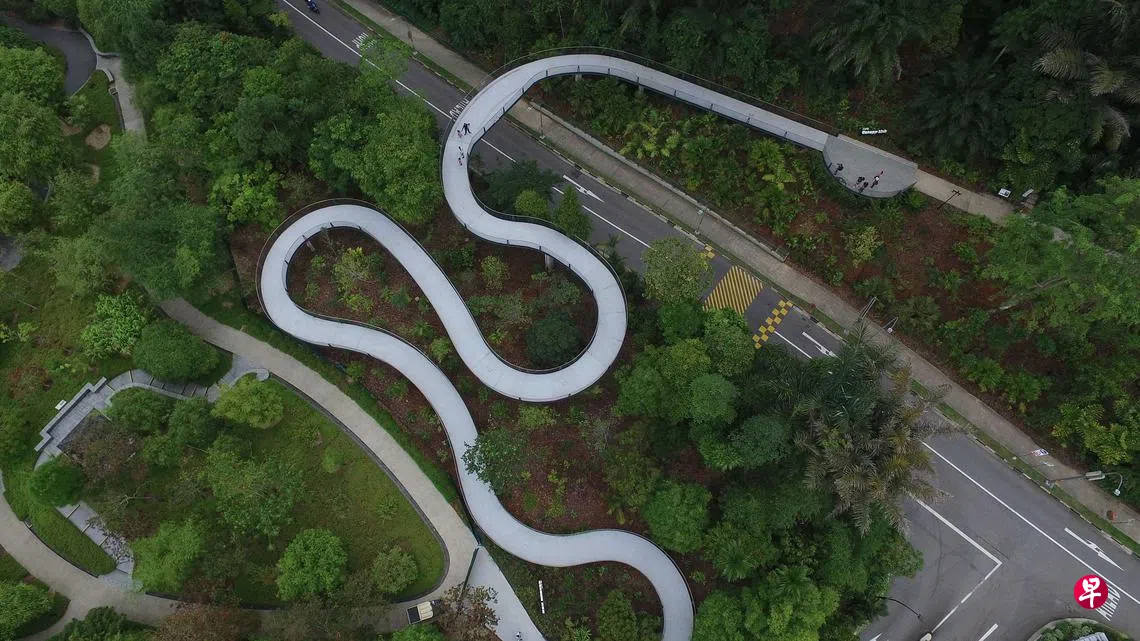 新加坡植物园新辟的泰瑟-格洛区已完工,为方便访客通行,园内建起了200米长的树冠桥。
