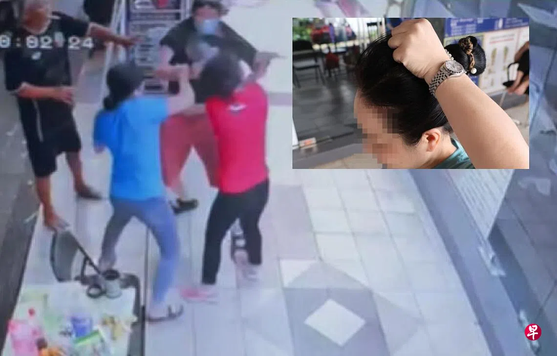 这时有店员走出来说报警了,男子一度要走,又被刘小姐捉着,岂料男子出手扯刘小姐的头发,一旁围观的阿叔和其他店员也试图把两人拉开。