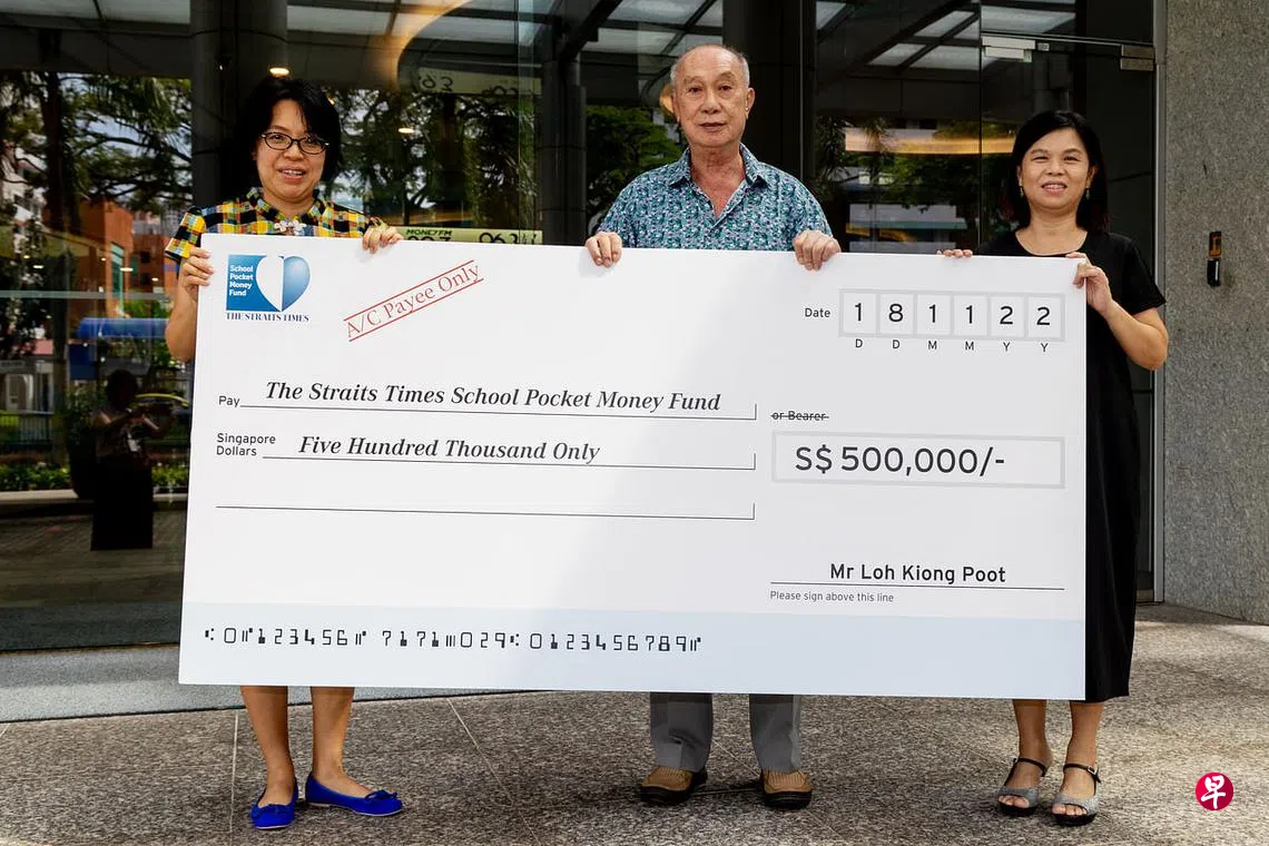 这是罗恭馥连续第五年向《海峡时报》学校零用钱基金捐款50万元,用于帮助低收入家庭的青少年和儿童。