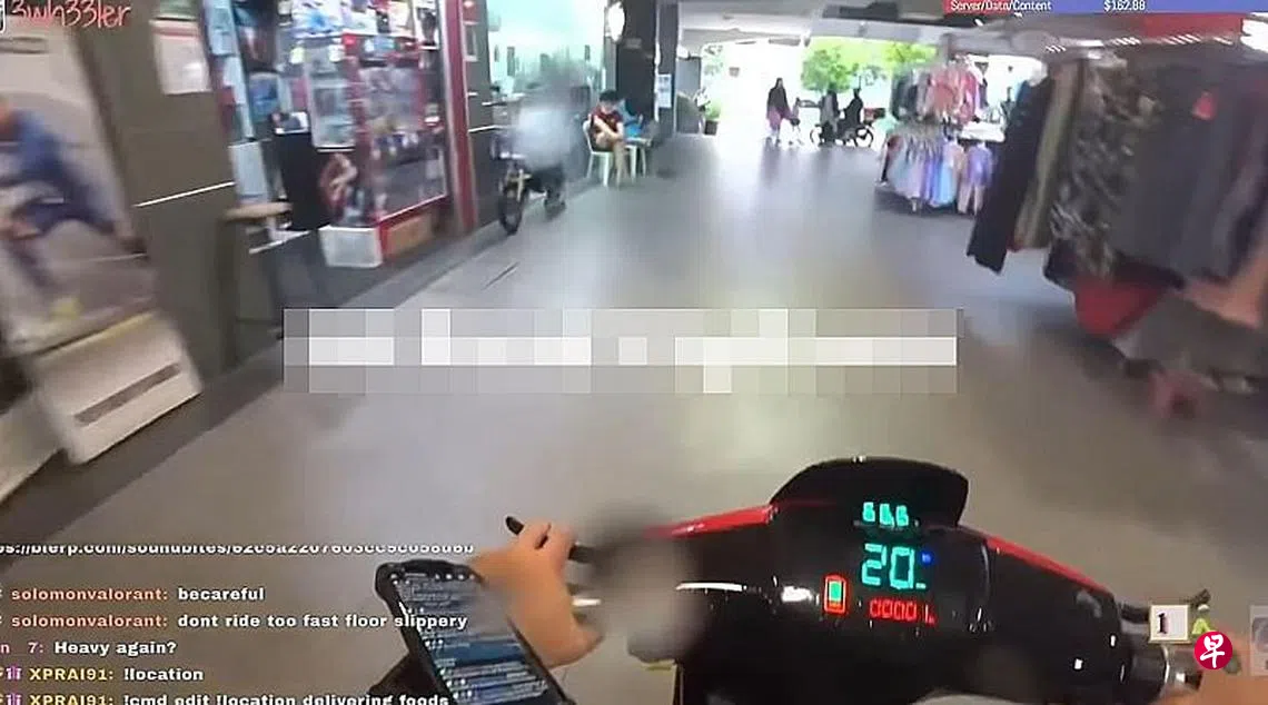 送餐员网上直播,被人发现以高达20公里的时速骑着行动辅助工具,穿梭于邻里商场,还因此与路过公众发生口角。