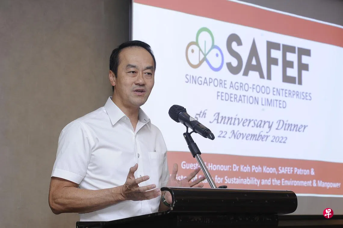 人力部兼永续发展与环境部高级政务部长许宝琨星期二(11月22日)在新加坡鲜农总会(Singapore Agro-Food Enterprises Federation,简称SAFEF)成立五周年庆祝晚宴上致辞时,宣布上述消息。