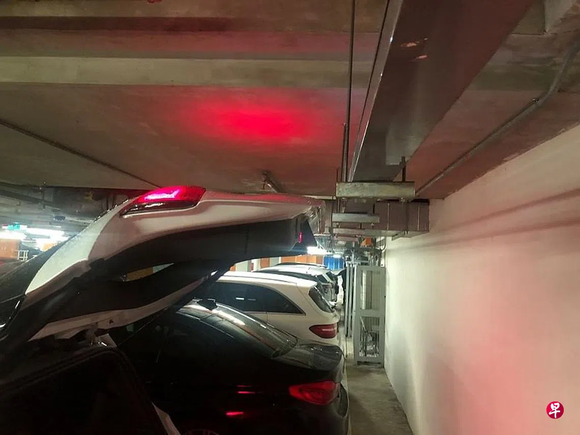 两米高度不够?马赛地车主申诉,把新车泊在滨海湾金沙购物商城停车场,岂料打开后车厢时,遭顶部铁架上的铆钉刮花,车主要商场为此事负责。