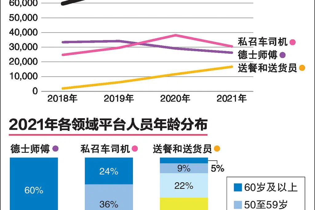 委员会因此认为,应该认真检讨如何帮助平台员工。目前,本地有11家持照的点对点召车服务商和至少三家较大的送餐平台。2020年疫情暴发后,本地的平台员工一度达到近8万人,现在下降至7万3200人。30岁以下约6400人。