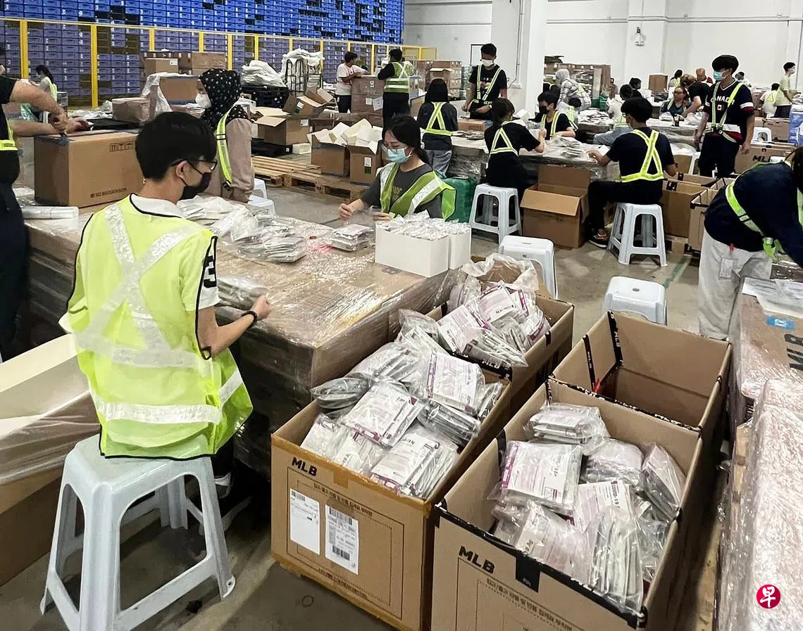 他也感谢执行派送任务的新加坡邮政团队,并附上团队忙着包装检测仪的照片。