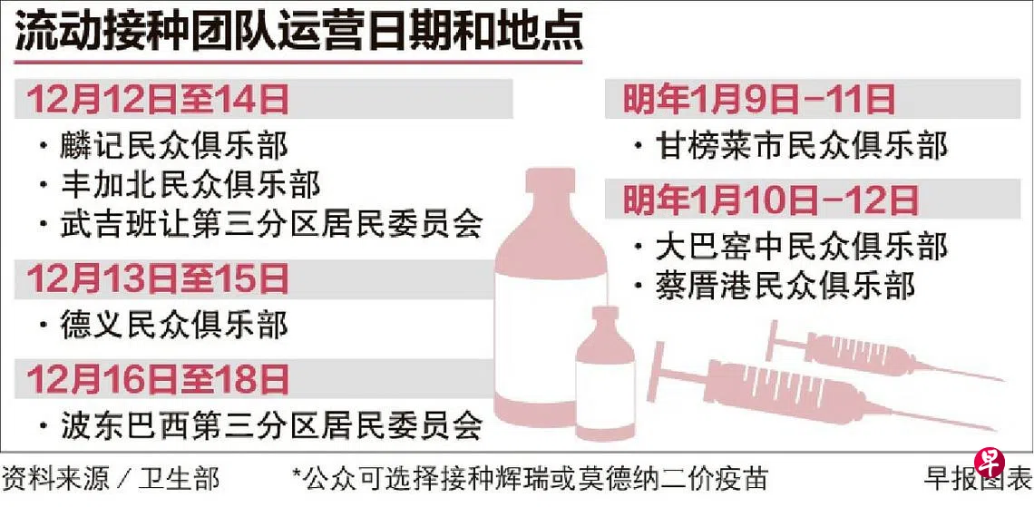 辉瑞/复必泰冠病二价疫苗在星期一(12月12日)正式推出,但到流动站接种的公众,多数仍选择接种莫德纳/Spikevax二价疫苗。卫生部长王乙康认为,随着辉瑞二价疫苗推出,接种率料将进一步提高。