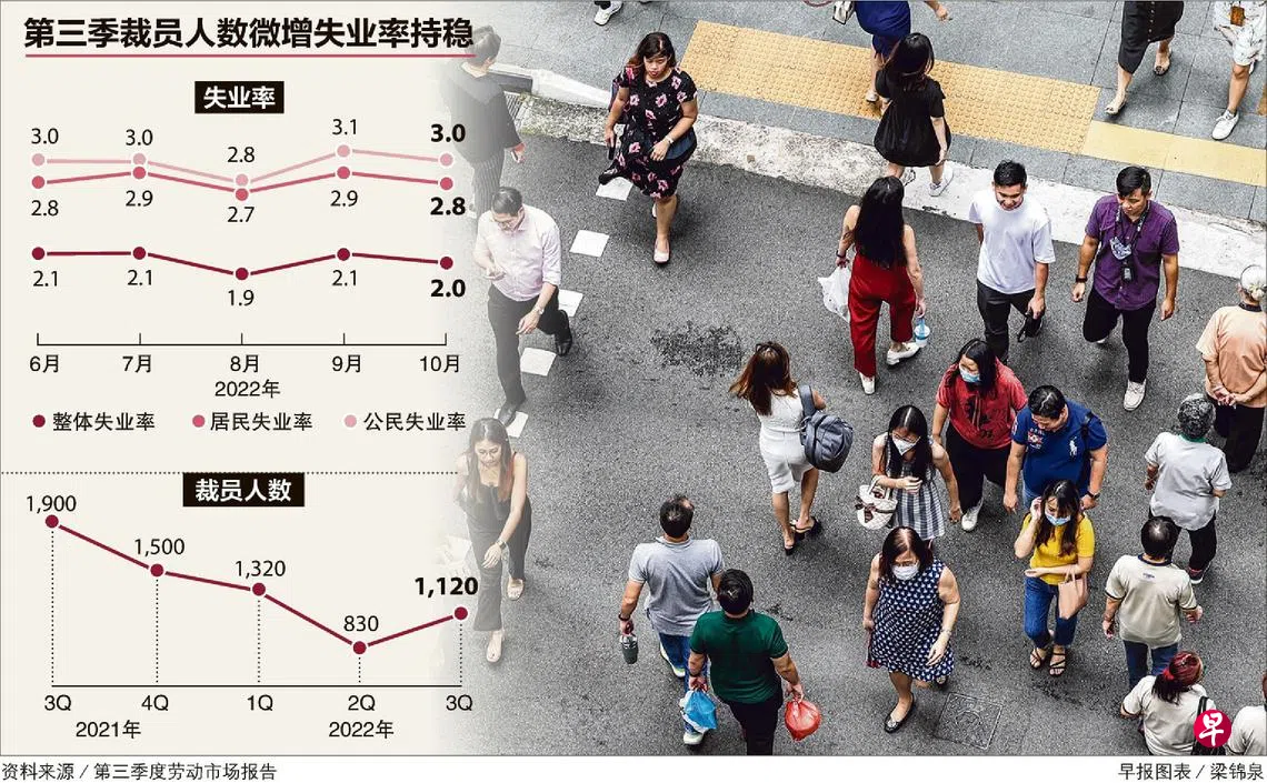 我国今年第三季有1120人被裁退,当中460人来自科技公司,不过该领域职位空缺率仍高,显示被裁退的主要原因是企业业务重组。同时,劳动市场紧缩的情况有所舒缓,今年9月的职位空缺减至10万8200个,连续第二个季度下降。