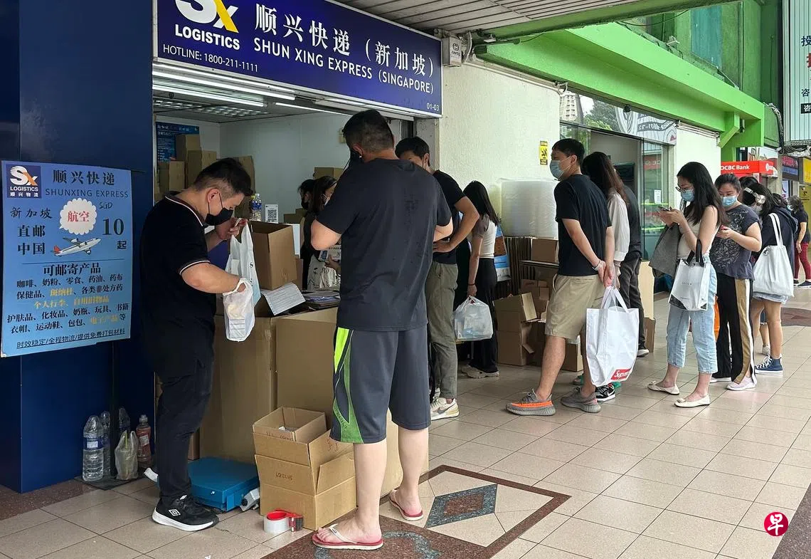 《联合早报》记者星期五(12月16日)中午走访牛车水发现,可以邮寄药品的快递站点都排起长队,队伍中多为二三十岁的年轻人。