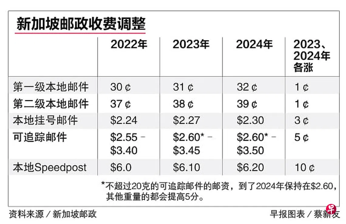 新加坡邮政明年和后年都会调高邮资和速递费,总涨幅介于2分到2角。